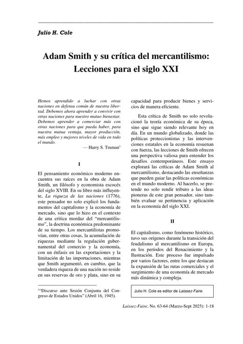 Adam Smith, el economista escocés del siglo XVIII, es considerado el padre del liberalismo económico. Sus ideas siguen siendo relevantes en el debate actual sobre el papel de los empresarios en la sociedad y la economía.