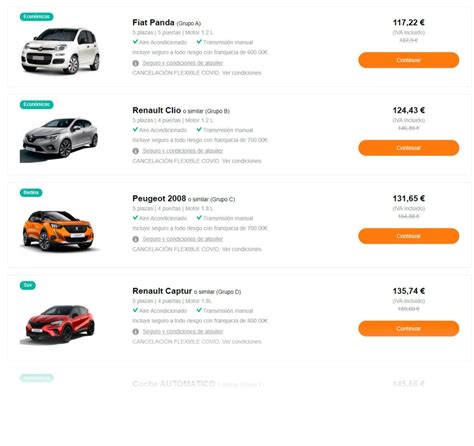 - Filtra tus ofertas: Filtra por tipo de coche, marca y más. Personaliza al instante tus resultados.