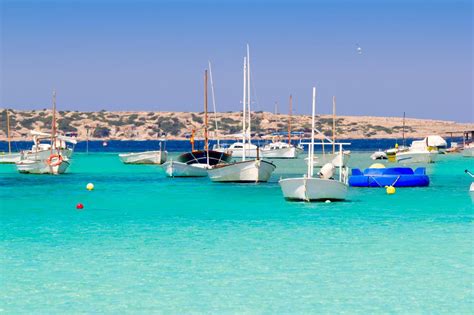 Las playas de Cala Saona o Es Pujols, que podrían competir con las más bellas del mundo, están a menos de 10 km. Esta isla es prácticamente plana hasta que llegas a los espectaculares acantilados del Faro de La Mola, que se encuentra a unos 20 km de distancia.