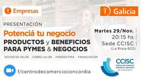 Banco Galicia ofrece soluciones a medida comprendiendo cada etapa del ciclo de vida del negocio. Además, a través de Galicia Convenios, el Banco brinda una operatoria simple y ágil para acceder a préstamos con el aval de las principales Sociedades de Garantía Recíproca (SGR) del país. Los nuevos clientes Pymes disponen del Servicio de Cuenta bonificado durante los primeros 12 meses y una primera chequera sin cargo.