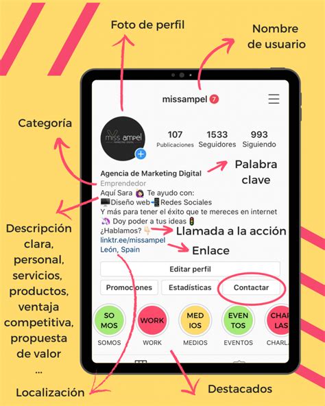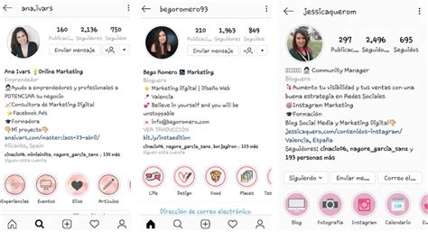 - Biografía optimizada con palabras clave: Tu biografía es el espacio perfecto para incluir palabras clave secundarias.