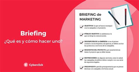 - Briefing de marketing: Este tipo de briefing se enfoca en acciones específicas dentro del ámbito del marketing. Este briefing está destinado a resumir los detalles principales de la acción de marketing (digital o tradicional) que se quiere poner en marcha. Un ejemplo práctico de un briefing de marketing para el lanzamiento de un nuevo producto podría incluir los objetivos comerciales, el perfil del consumidor, los canales de marketing a utilizar, y el presupuesto asignado.