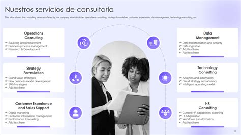 Una empresa puede encargar varios tipos de consultoría al mismo tiempo o una sola en un campo concreto que le preocupe. Aunque también existen consultores de empresas profesionales de ámbitos técnicos como el logístico, el tecnológico o el medioambiental, entre otros. Los consultores de empresas pueden ejercer su trabajo de forma independiente o dentro de una empresa de consultoría y asesoría.