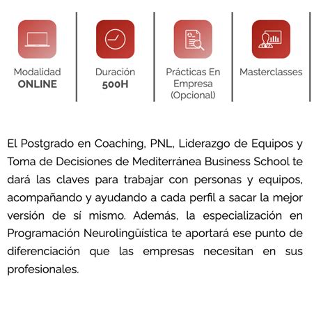 Postgrado en Coaching, PNL y Liderazgo de Equipos