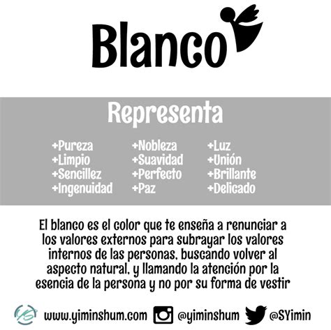 Dicen que el color blanco representa la inocencia, la pureza, lo simple y lo claro, lo sincero, lo sofisticado y a la propia felicidad, pudiendo ser un protagonista de excepción en el contexto de marca. El blanco se asocia con sentimientos de limpieza, pureza y seguridad. Se puede utilizar para proyectar la ausencia de color o neutralidad. El espacio en blanco ayuda a despertar la creatividad, ya que puede percibirse como una pizarra limpia e inalterada.