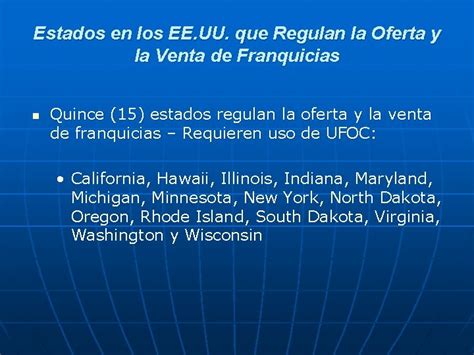 En Estados Unidos las franquicias están reguladas tanto a nivel federal como estatal.