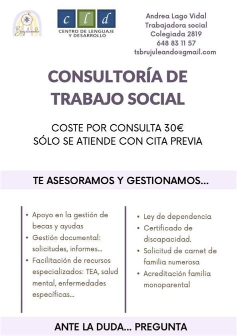 | Consultoría para Emprendedores | Asesoramiento para iniciar un negocio en el ámbito del Trabajo Social. |