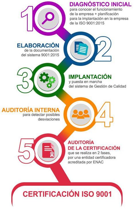 A continuación, se detallan las etapas clave para la obtención del certificado de gestión de la Norma ISO 9001: