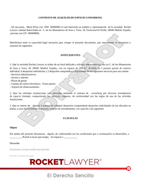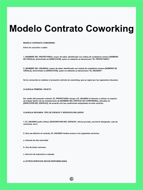 A continuación, se presentan algunas cláusulas comunes que se pueden encontrar en un contrato de coworking: