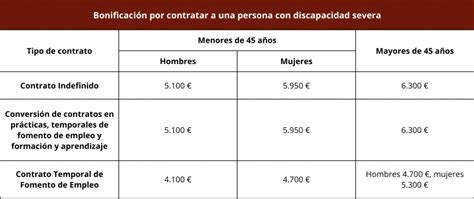 - Mayores de 45 años, la empresa tendrá derecho a una bonificación en la cuota empresarial a la Seguridad Social, cuya cuantía será de 108,33 euros/mes (1.300 euros/año) durante tres años. Cuando estos contratos se concierten con mujeres en ocupaciones en las que este colectivo esté menos representado, las bonificaciones indicadas serán de 125 euros/mes (1.500 euros/año).