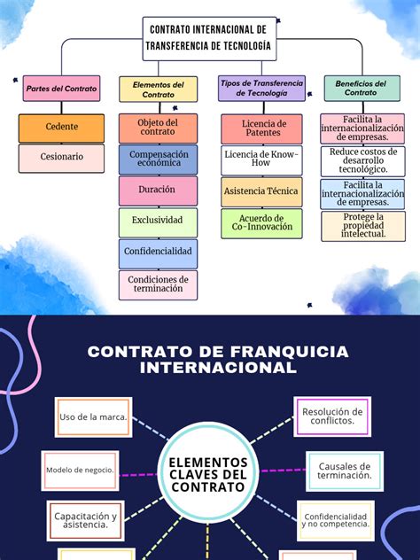 - Contrato de franquicia internacional: Permite al franquiciado operar bajo la marca, el modelo de negocio y el conocimiento del franquiciador a cambio de regalías.
