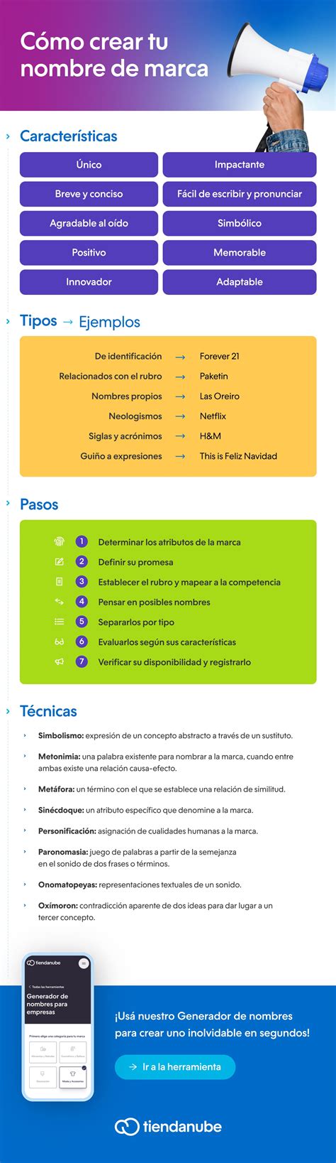 - Concreción: Si crees que un nombre da cabida a confusiones, o a un doble sentido con el que no deseas que tu marca se identifique, ¡mejor no lo uses!