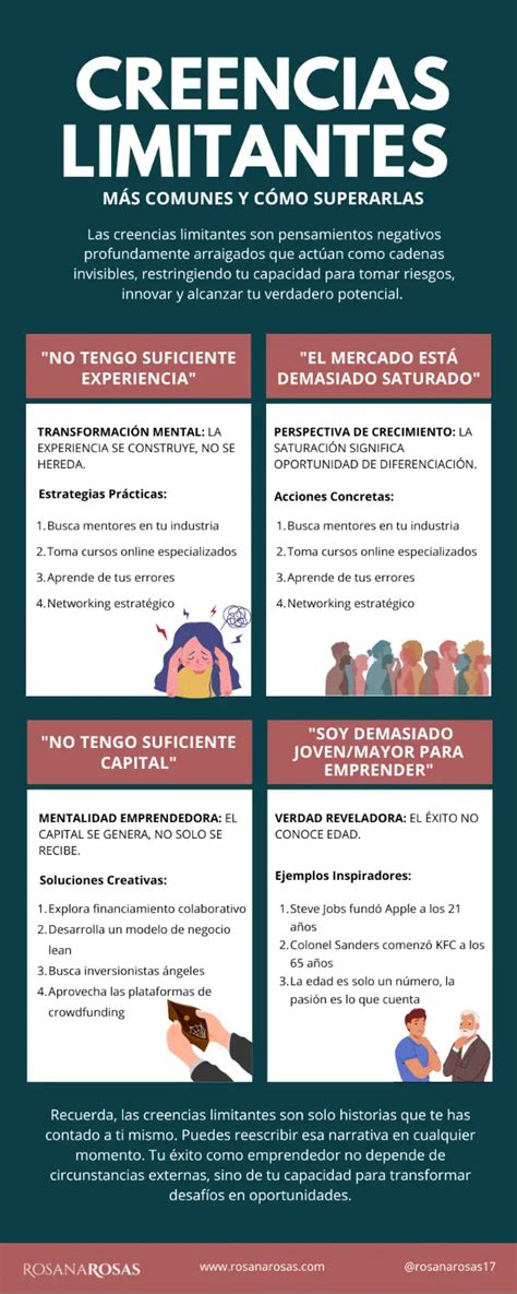 Es importante reconocer estas creencias limitantes para poder superarlas y avanzar en el camino hacia el éxito como emprendedor.
