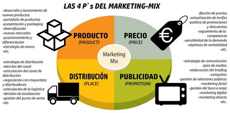 | Promoción | Actividades de comunicación y publicidad. | Publicidad, relaciones públicas, marketing digital. |
