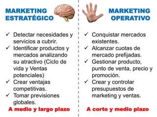 | Característica | Marketing Estratégico | Marketing Operativo |