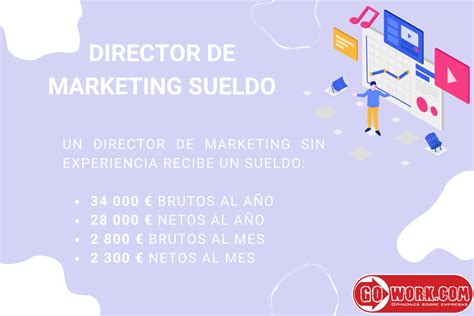 El sueldo medio de un Director de Marketing en España es de 61.400 € brutos por año, que son unos 3.330 € netos por mes. El sueldo de un Director de Marketing puede empezar en un salario mínimo de 34.500 € brutos por año, mientras que el salario máximo puede exceder los 130.000 € brutos por año.
