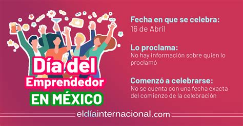 El 19 de noviembre se celebra el Día Internacional de la Mujer Emprendedora, impulsado por WEDO en más de 140 países. En México, se reconoce el esfuerzo de las mujeres que contribuyen al desarrollo económico del país. Según el INEGI, las mujeres son propietarias del 36% de los negocios micro, pequeños y mediados.