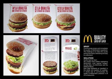 - McDonald's: Folletos en forma de hamburguesa que explican la calidad de sus ingredientes.