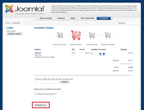 Para crear y clasificar productos, crea categorías y nuevos artículos en el sistema convencional de Joomla. También permite asignar precios de forma avanzada y gestionar los envíos de los productos.