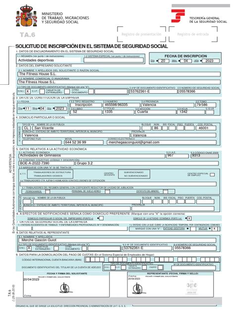 La inscripción es el acto administrativo mediante el cual la Tesorería General de la Seguridad Social asigna al empresario este número para su identificación y control. Este número es considerado como el primer y principal Código de Cuenta de Cotización.