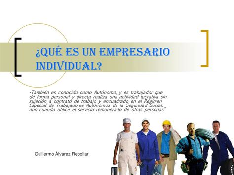 El concepto empresario individual hace referencia a los autónomos o empresas individuales en las que una persona física se dedica por cuenta propia a una actividad económica. Así, el autónomo o empresario individual factura con su NIF como persona física en una sociedad individual. A pesar de que la figura del autónomo está vinculada con el trabajo de una persona, el empresario individual puede contratar empleados.