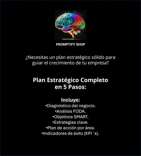 | Consultoría Estratégica | Planificación y gestión estratégica del negocio. | Definición de objetivos, optimización de recursos, cumplimiento de metas. |