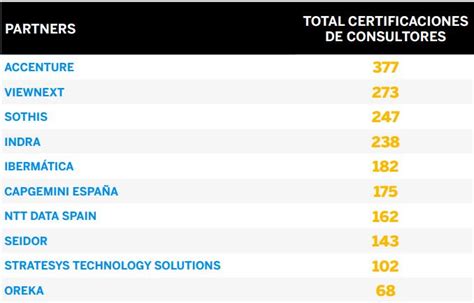 SAP publica regularmente su Matriz de Partners, en la que clasifica a sus socios comerciales en función del número de consultores certificados que tienen, así como de las soluciones e industrias en las que están especializados.