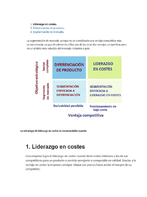 Aquí hay una tabla comparativa que resume las diferencias clave entre las estrategias de liderazgo en costes y diferenciación de productos: