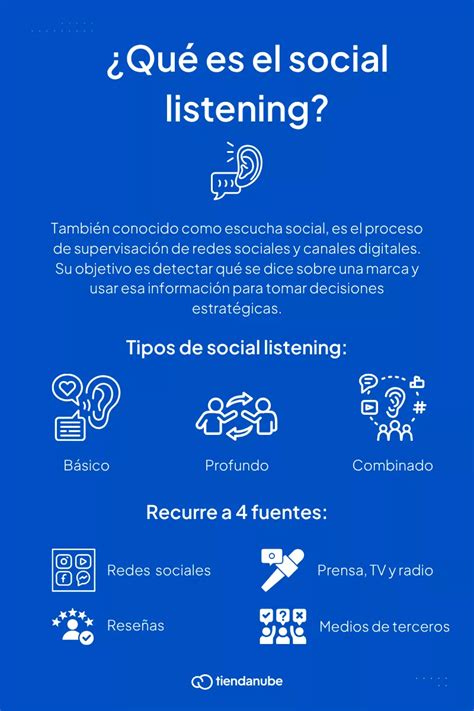- Social Media Listening: Se enfoca en escuchar conversaciones y analizar sentimientos, tendencias y percepciones.