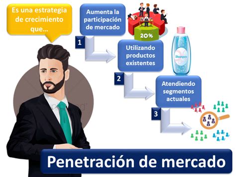 La estrategia de penetración de mercado se compone de una serie de tácticas que debe ajustarse a las condiciones del mercado que resultan favorables para la empresa.