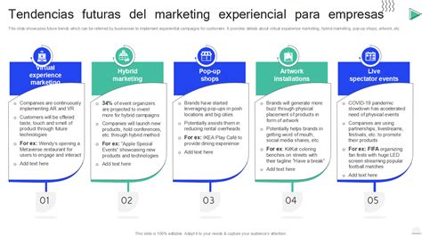 En el futuro, se espera que el marketing experiencial siga evolucionando y adaptándose a las nuevas tecnologías y a las cambiantes necesidades de los consumidores. La personalización, la inmersión y la interactividad serán elementos clave para crear experiencias aún más impactantes y memorables.