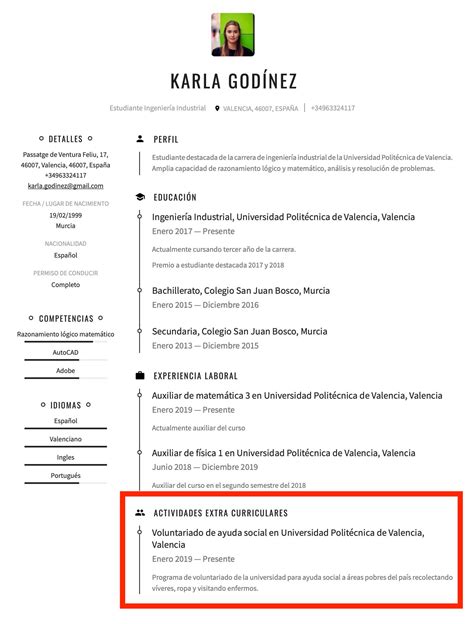 La experiencia de liderazgo es muy valorada por los empleadores, ya que demuestra habilidades como trabajo en equipo, capacidad de gestión y toma de decisiones. Es importante destacar la experiencia de voluntariado y liderazgo de una manera clara y concisa en nuestro currículum.