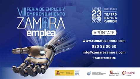 La Cámara de Comercio de Zamora se prepara para celebrar la octava edición de la Feria de Empleo y Emprendimiento “Zamora-Emplea” el próximo 23 de octubre de 2025. El evento se llevará a cabo en el Teatro Ramos Carrión, en horario de 9:00 a 14:00 horas.
