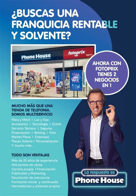 Además ahora incorporamos una segunda franquicia dentro de Phone House con Fotoprix para que puedas duplicar tu rentabilidad. Buscamos tanto pequeños emprendedores como grandes inversores que quieran desarrollar y hacer grande su inversión junto a nosotros. Te ayuda a desarrollar tu negocio, montando red de tiendas Phone House.