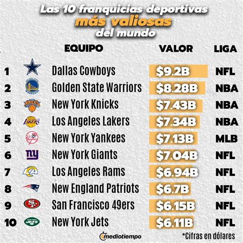 | Franquicia | Liga | Valor (millones de dólares) |