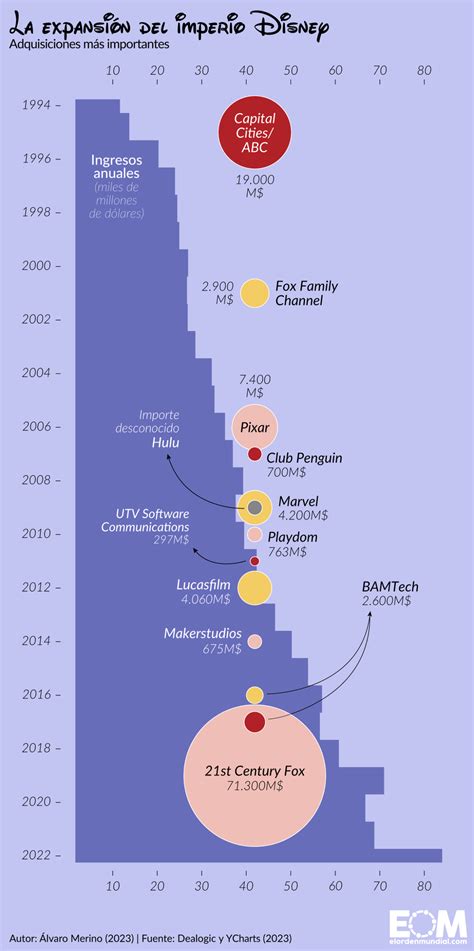 El crecimiento de Disney no se basa únicamente en la creación de contenido original. Gran parte de su éxito radica en la adquisición inteligente de propiedades intelectuales ya establecidas y con una base de fans sólida. Estas adquisiciones permiten a Disney diversificar su oferta, expandir su alcance global y consolidar su posición como líder del mercado.
