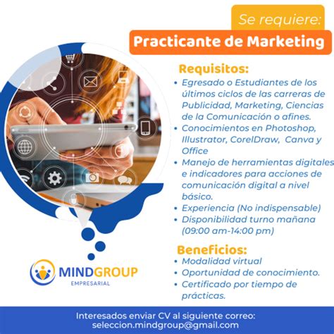 Los profesionales de este campo tienen la tarea de diseñar estrategias efectivas, gestionar la presencia en línea de las marcas y generar un impacto positivo en la audiencia. Dentro de este contexto, el rol del practicante de marketing se vuelve esencial. Un Digital Marketing Specialist se responsabiliza de implementar, desarrollar y ejecutar el plan de marketing digital.