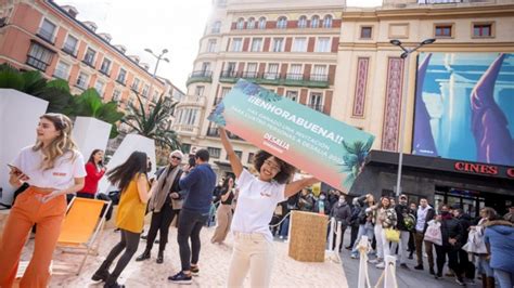 - Cacharel: Inflar globos rojos con mensajes personalizados en la Plaza de Callao en Madrid.