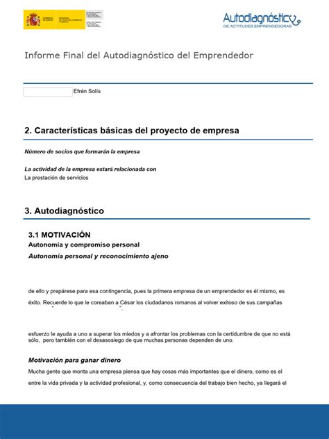 El Ministerio de Industria, Comercio y Turismo a través de la Secretaría General de Industria y de la Pequeña y Mediana Empresa, han creado la herramienta de autodiagnóstico de actitudes emprendedoras, un instrumento interactivo que permite dar un diagnóstico a los emprendedores y emprendedoras que cumplimenten un cuestionario y, a continuación, ofrecer al emprendedor y emprendedora una serie de recomendaciones que le ayudarán a estar preparado para iniciar su proyecto.
