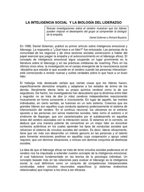 Liderar eficazmente no se trata solo de dominar situaciones, sino de desarrollar un interés genuino en las personas y la capacidad de fomentar emociones positivas en quienes necesitas cooperación y apoyo. La inteligencia social, definida como un conjunto de competencias interpersonales construidas sobre circuitos neuronales específicos, inspira a otros a ser eficaces.