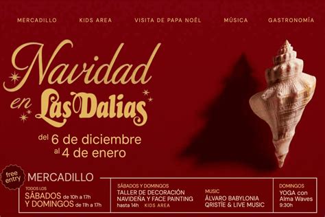 También en Navidad, residentes en Ibiza y visitantes pueden disfrutar del ambiente navideño del mercadillo de Las Dalias. Las Dalias abre sus puertas a la Navidad hasta el 5 de enero, los sábados de 10 a 17 horas y los domingos de 11 a 17 horas.