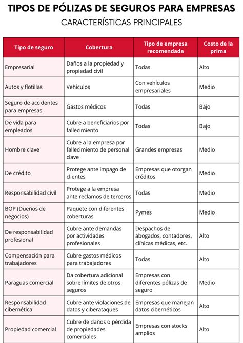 La elección de los seguros adecuados depende en gran medida de la actividad específica de la empresa. A continuación, se presentan algunas recomendaciones: