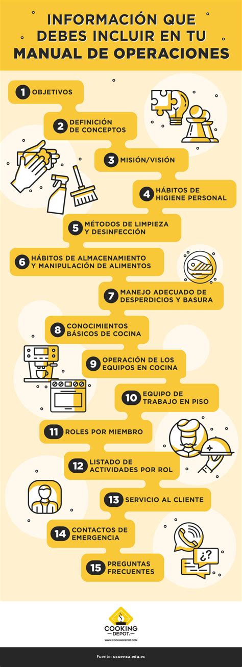 A continuación, se detallan los componentes esenciales que debe incluir un manual operativo: