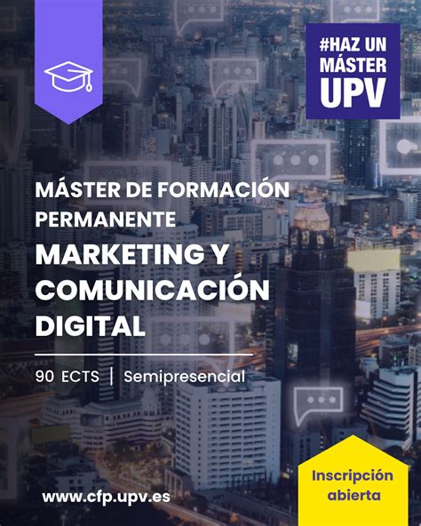Prepárate para liderar en el ámbito digital con el Máster en Marketing y Comunicación Digital de la Universidad Politécnica de Valencia (UPV). Este programa está diseñado para equiparte con las habilidades esenciales en estrategia y contenido digital, formando expertos altamente demandados por startups y empresas en plena transformación digital.