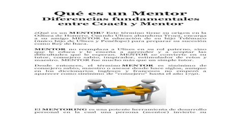 En el ámbito profesional, un mentor es una persona que transmite los conocimientos adquiridos durante años de experiencia a un "mentee" o aprendiz. Ejerce el difícil, pero a la vez motivador, papel de transmitir su experiencia y hacer crecer profesionalmente y personalmente a su “mentee” o aprendiz. Un mentor necesita de un mentee, igual que un mentee necesita un mentor, pero lo más importante para un buen mentoring es tener preparado un buen programa mentoring.