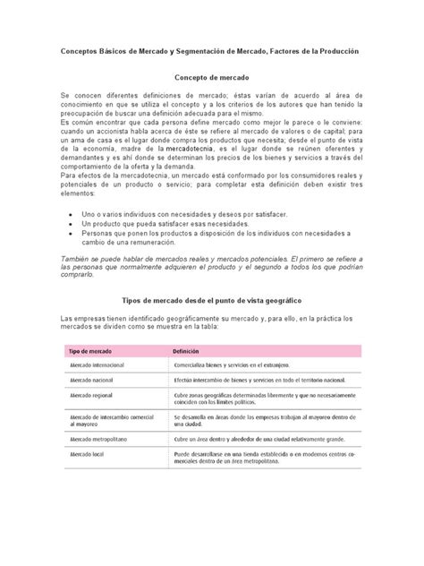 Los mercados pueden englobarse en cuatro diferentes tipos: según la competencia, el producto, los compradores y el punto de vista geográfico.