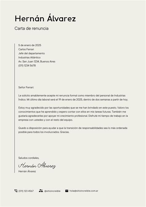 - Firma: Incluye una despedida profesional y tu firma manuscrita o electrónica.