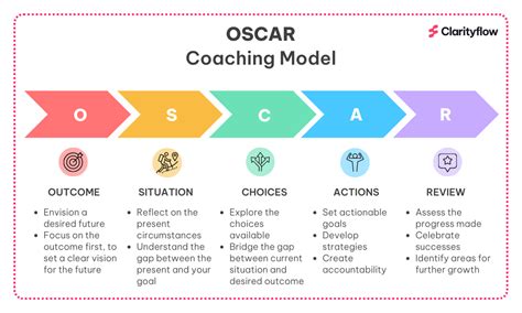 El modelo OSCAR, que significa Outcome (Resultado), Situation (Situación), Choices (Opciones), Actions (Acción) y Review (Revisión), es un marco utilizado en el coaching para proporcionar retroalimentación estructurada y efectiva. Ayuda a clarificar el resultado deseado del coaching, comprender la situación y el contexto actuales, explorar las opciones disponibles, decidir las acciones a tomar y, finalmente, revisar los resultados de estas acciones.