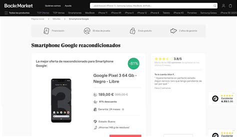 - Opiniones de clientes de Back Market: 3,9/5 ⭐ de 38.512 compras verificadas