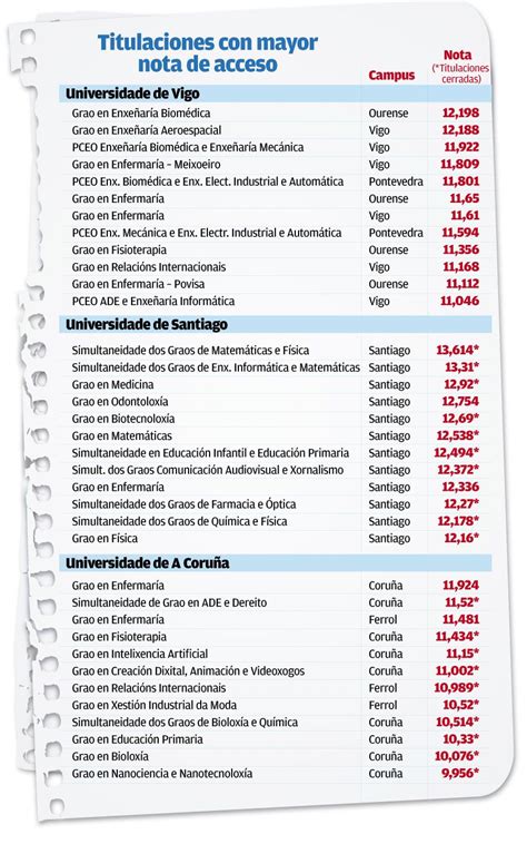 La nota de corte es la calificación del último alumno que fue admitido en una titulación específica en una universidad pública. Esta nota varía cada año y depende de la demanda del grado y del número de plazas disponibles.